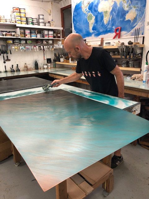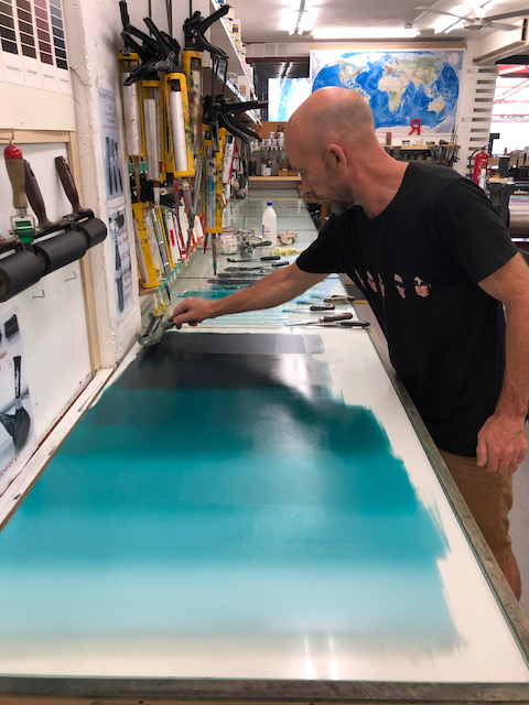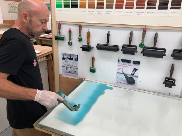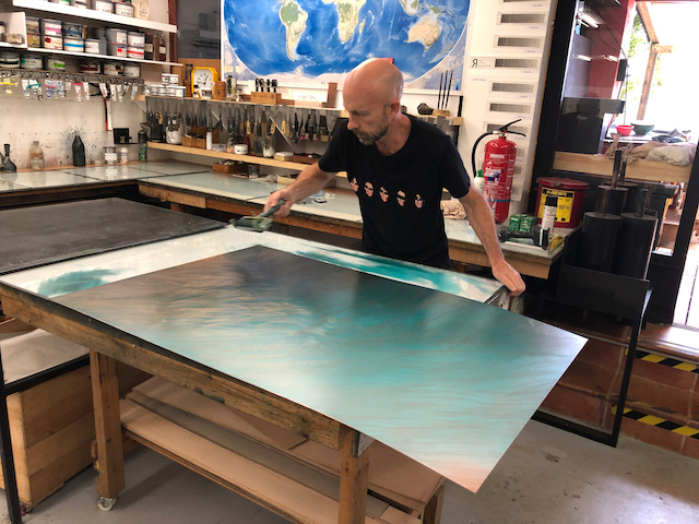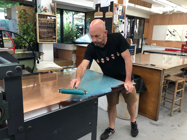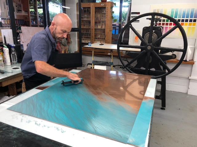 Project: Large size copper plate hard ground etched; printing with roll-up